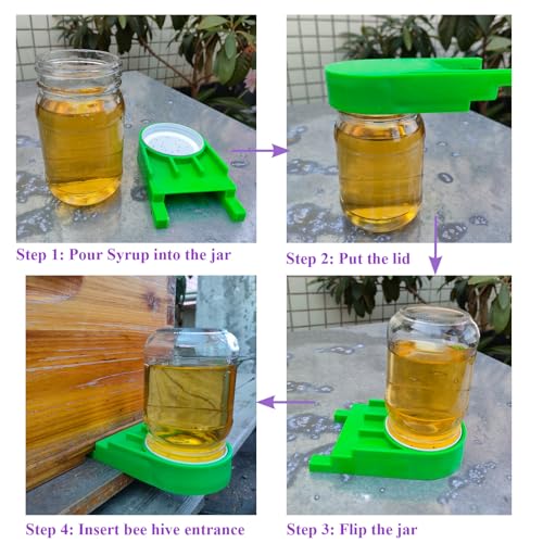 Easy and Effective: Select a jar, screw the lid of the bee entrance feeder with water or syrup, invert it and insert it into the beehive to complete the installation. And It can be refilled without opening the beehive or disturbing the bees, thus saving time and energy.