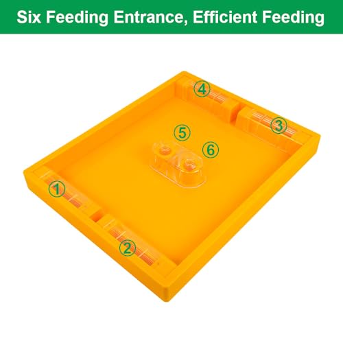 🍯Be careful when pulling the transparent cover out of the socket.You can use a suitable round object to slowly push up from the socket to avoid breaking clear plastic bits.Our bee feeder includes six feeding entrances, it is convenient to feed bee. The beekeeper can clearly see the situation in the feeder through the transparent cover.The bee Feeder hole designed scientificly, anti-robber bees,bring more economy.