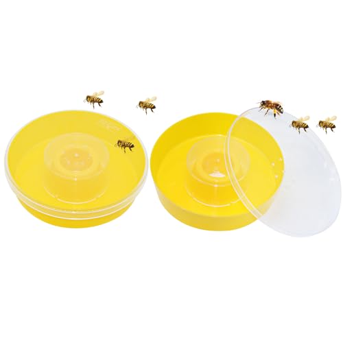 Bee Hive Top Water Feeder, 2 Pack Round Rapid Bee Feeder Plastic Honey Beehive Entrance Feeder, Bee Sugar Water Dispenser Equipment for Beekeeping Supplies Tool – Yellow