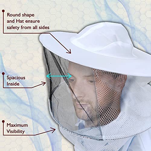 Bee Suit caters to the requirements of practicing safe beekeeping activities. Our bee keeper Costumes for men and bee keeper costumes for women serve to be an all-inclusive protective garment with space inside for safety. Our bee keeper costume set includes a round hooded veil, a full-body overall beekeeper costume of all 3 sizes; XXL, XL and Large, and a pair of goat skin gloves.