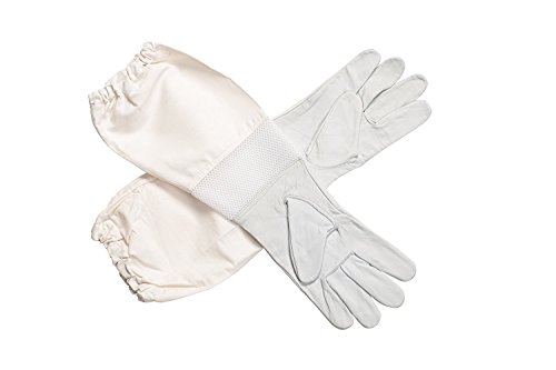 Forest Beekeeping Premium Goatskin Leather Beekeeper’s Glove with white vent Long Canvas Sleeve with elastic cuff (M)