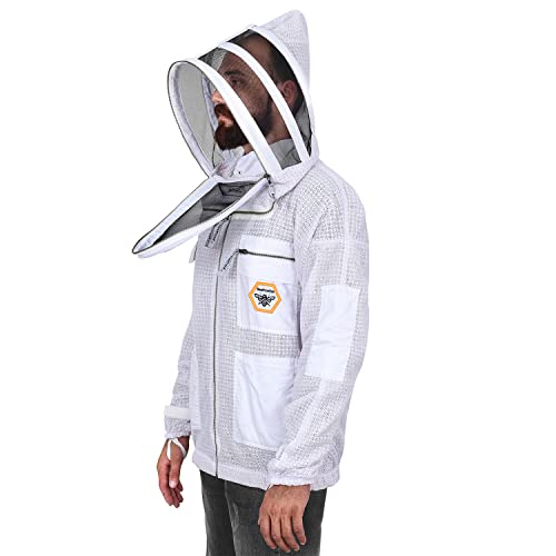 BP-301 Beekeeping Jacket with Veil 3 Layer Ultra Ventilated Bee Suit with Total Protection, Safety Fencing, YKK Brass Zippers with Carrying Bag (Medium)